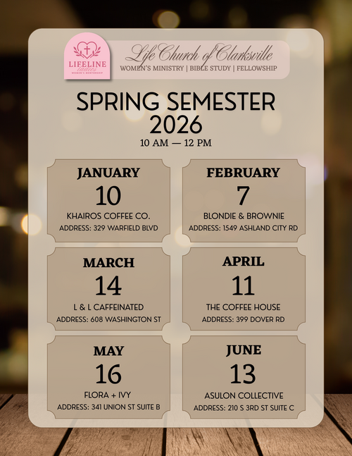 This year, we are kicking off our first semester of Lifeline Ladies, our women's ministry and mentorship program. We'll be going through Growing Together: Taking Mentorship Beyond Small Talk and Prayer Requests by Melissa Kruger. The focus of this book and our year is on developing mentorship relationships that foster meaningful connections, employ a biblical discipleship model, and promote growth together as women of Christ. We meet once a month from 10:00 AM to 12:00 PM around town as we support local businesses. Take a look at our schedule and join us at our next meetup!